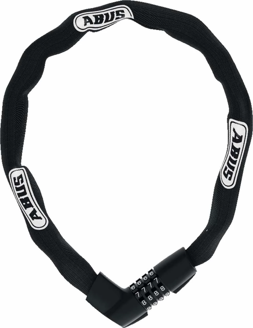 6 mm thick square chain with textile hose Chain is made of specially hardened steel 2-component number rollers Special scanning protection for increased security Number code individually adjustable ABUS Security Level 6