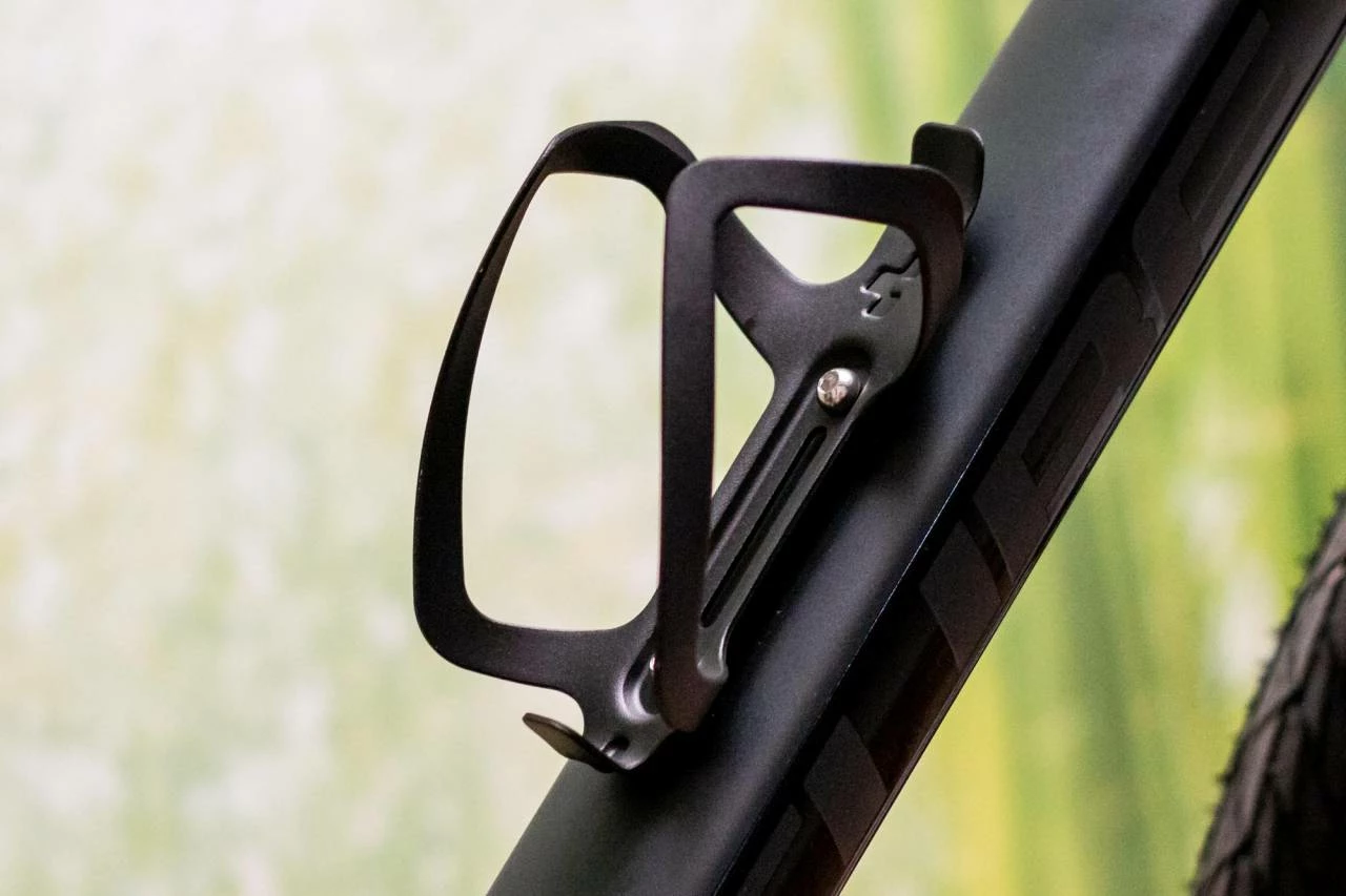 The one-piece forged bottle cage holds bottles securely and shines with a high-quality anodized finish.