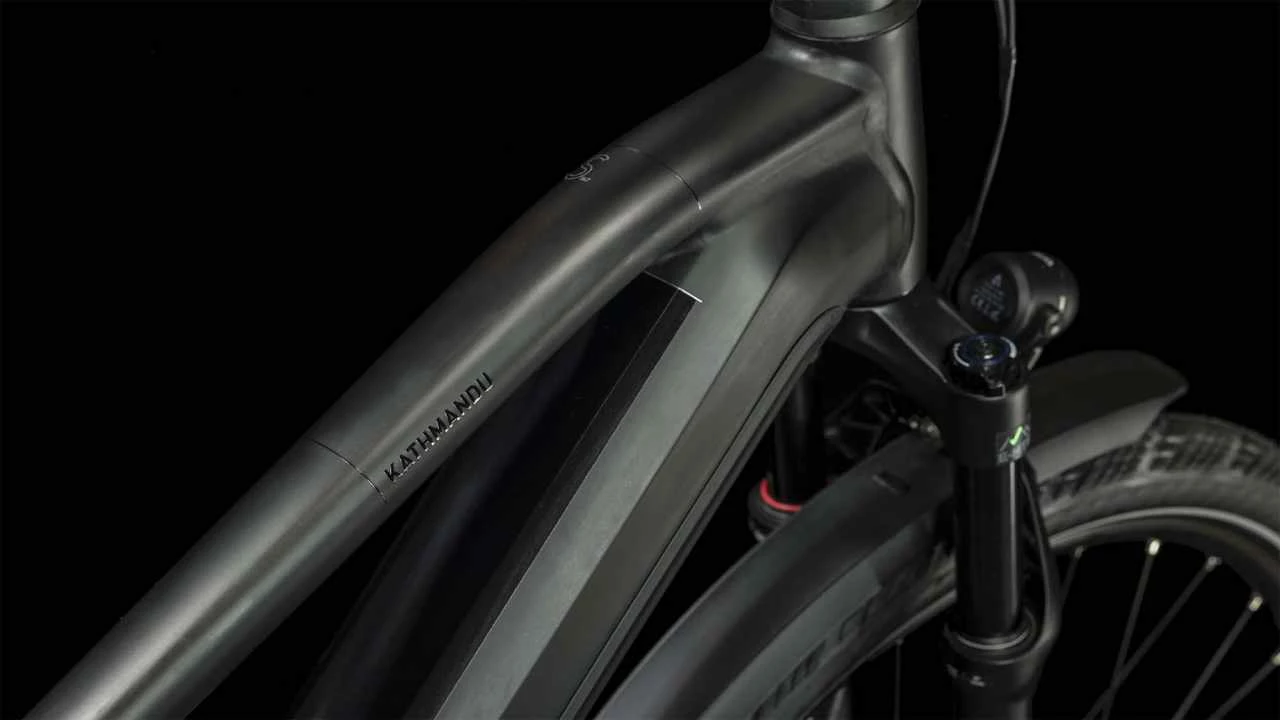 Where would you like to go? Because wherever it is, the Kathmandu Hybrid SLT 750 will get you there in comfort and style. With its sophisticated frame and high-capacity 750Wh battery for the best possible range, Bosch’s fourth-generation CX drive unit works with the wide gear range and smooth shifting of Shimano’s XT 1×12 transmission to devour any route with ease. We fitted four-piston Shimano XT hydraulic disc brakes for superb control in any weather. A Newmen wheelset and Schwalbe Marathon Efficiency tyres offer low weight, comfort and safe grip. And the RockShox Recon Gold RL fork, Byschulz seatpost and adjustable stem are all there for your comfort. Add the Integrated Carrier 3.0, mudguards, kickstand and lighting set and the only remaining question is, where will you ride next?