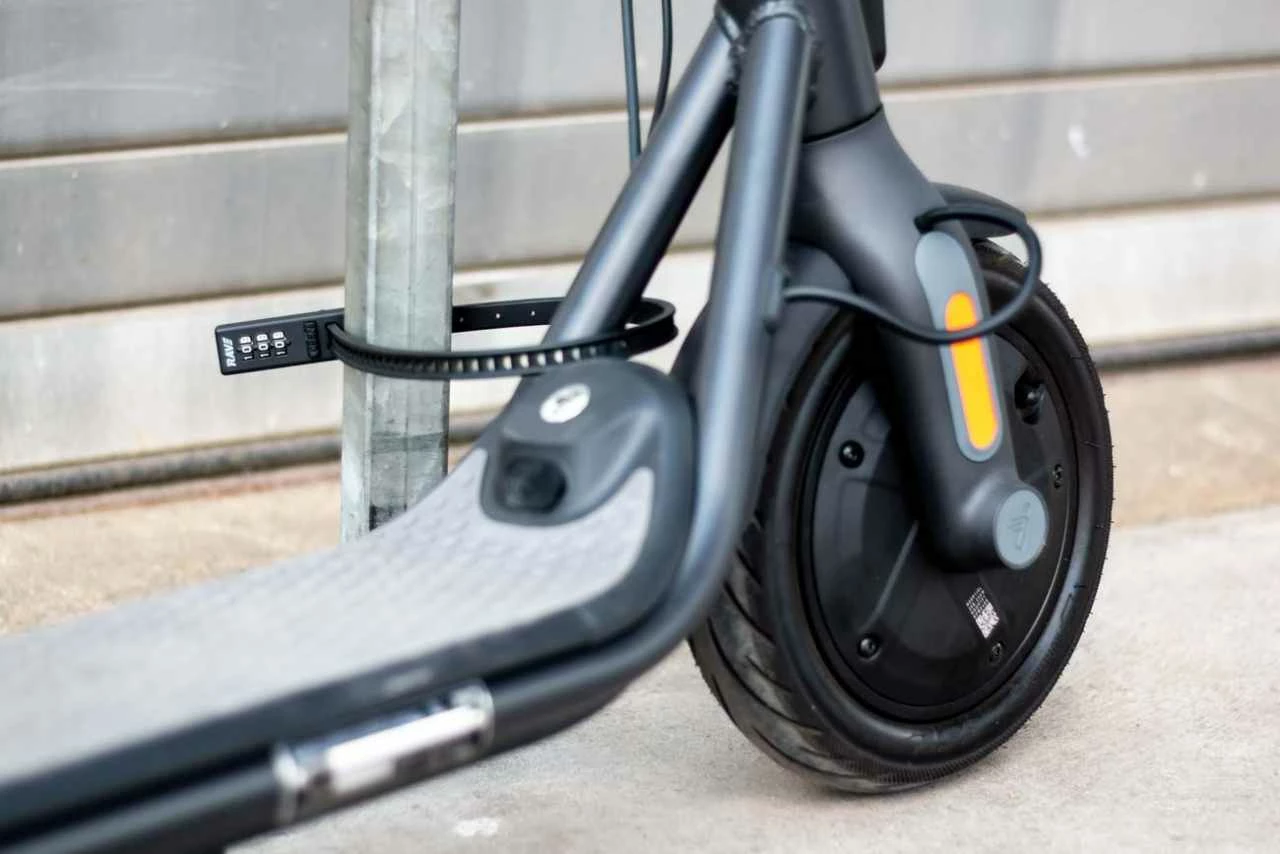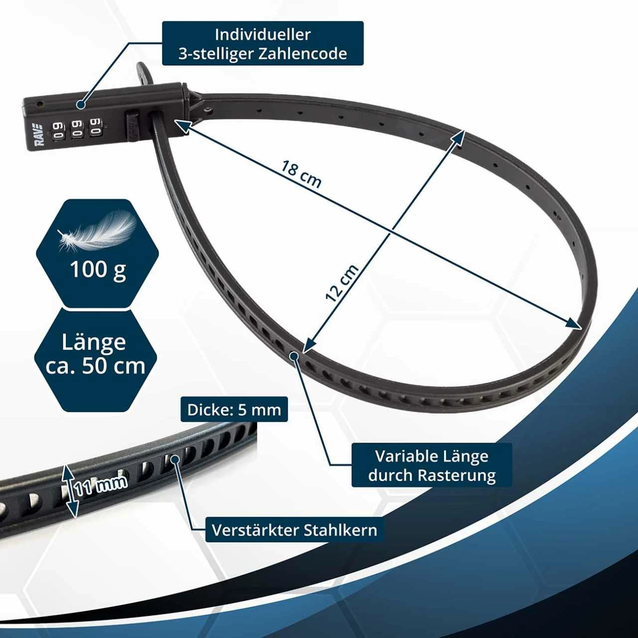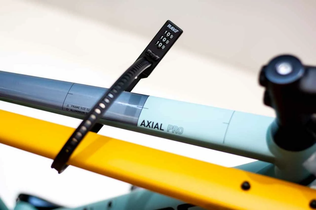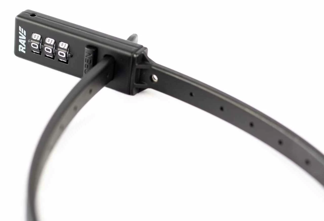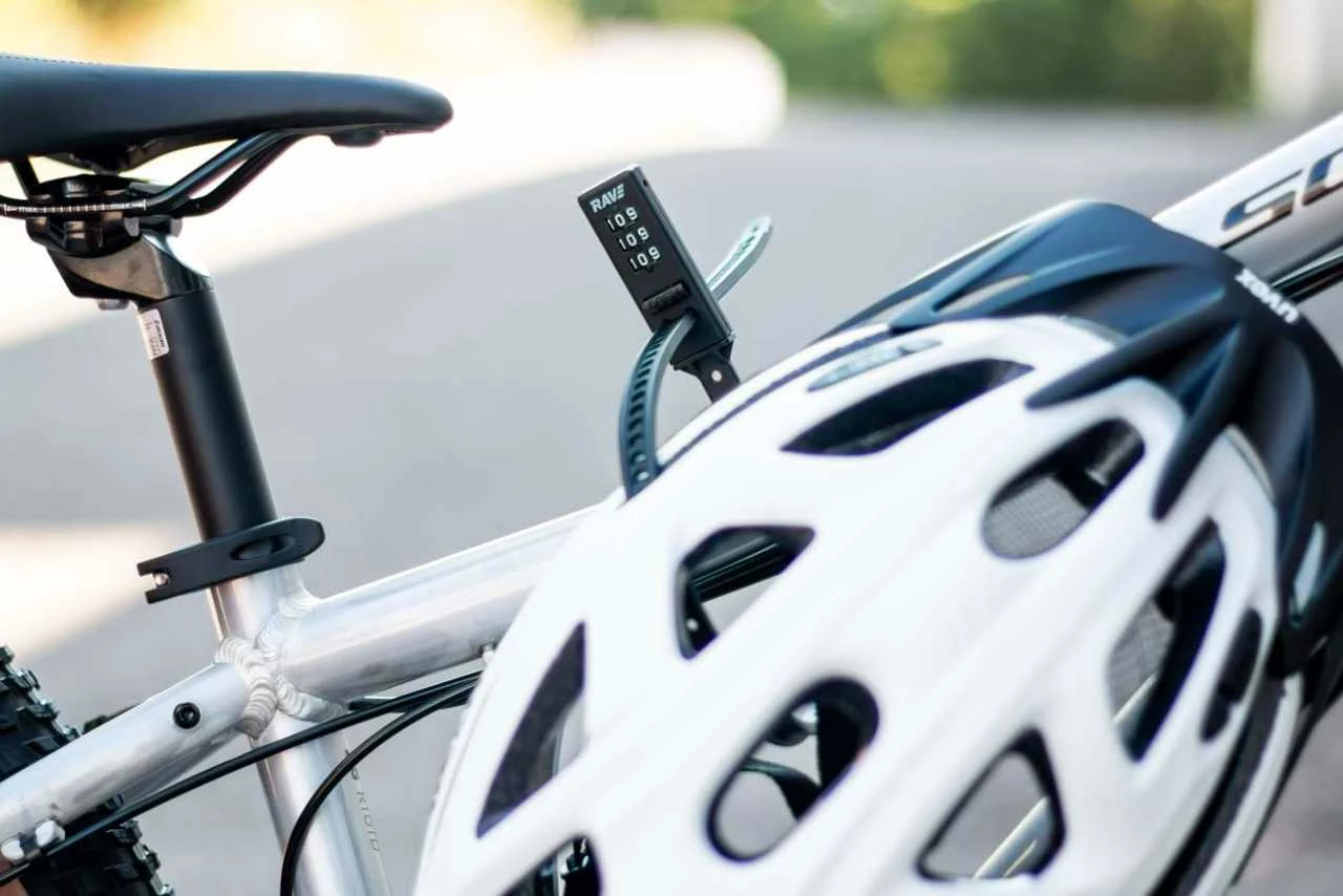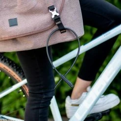 And this cable tie lock (because it looks like a cable tie and works like one) is extremely lightweight. The lock weighs just 100 grams. The reinforced steel core ensures that no one can take your bike, e-scooter, helmet or whatever spontaneously. The lock you can transport space-saving in a jersey bag or stow in a luggage bag.
