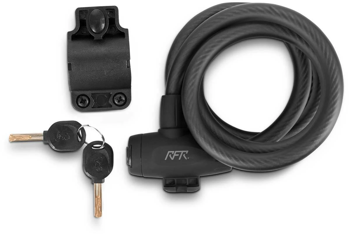 Very robust spiral cable lock with a cable diameter of 12 mm and a length of 1500 mm. Steel cable and lock body are corrosion protected and therefore optimal for everyday use. An extra secure lock cylinder offers unhesitating security. Incl. two keys and holder.